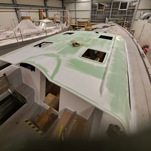 Nach dem Motto „Alles aus einer Hand“ hatte uns der Eigner den kompletten Ausbau bis zur segelfertigen Übergabe anvertraut: die Isolierung des Rumpfes, das Schleifen des Decks, den Einbau sämtlicher Schiffsbetriebssysteme, die Decksausrüstung, die Innenaustattung – letztlich alles bis zur Inbetriebnahme, Hafenerprobung und segelfertigen Übergabe.