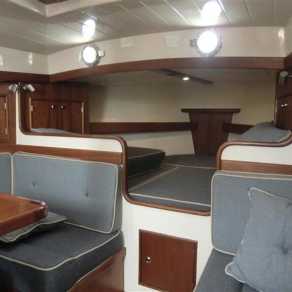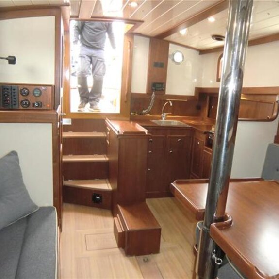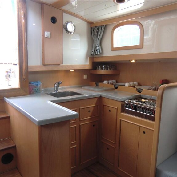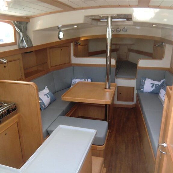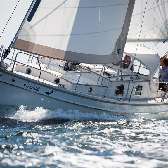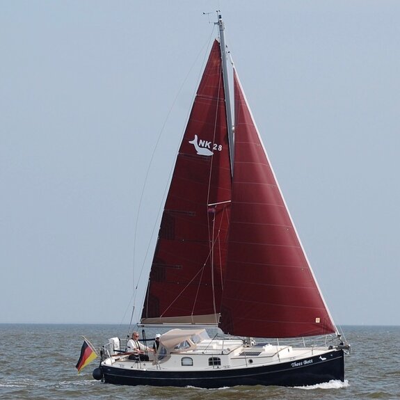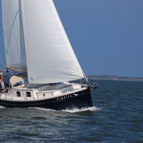 Ein kompakter Noordkaper in Polyesterausführung, klassisch geschnitten, aber modern getakelt: 7/8-Tornetakelung, trimmbares Achterstag und gepfeilte Salinge für einfache Masttrimmung.