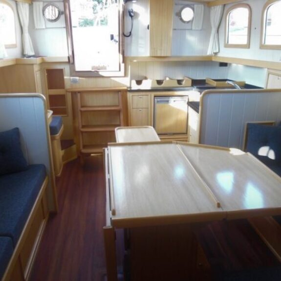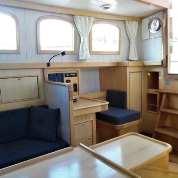 Die Ausführung mit erhöhtem Deckshaus: die Sitzecke im Deckshaus bietet Rundumsicht, unter dem Deckshaus ist Platz für eine Gästekabine